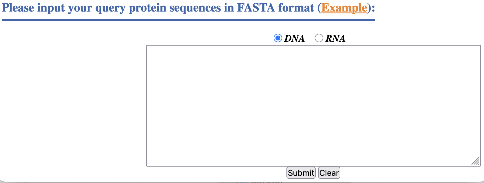 Before the ATMGBs analysis can begin, a user must provide a fasta file that contains the sequence of only one protein, and specify which kind of nucleic acid it may bind.